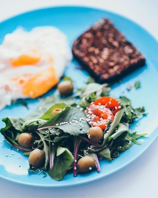 PDF guides often include meal plans designed to optimize glycemic response, pairing proteins and fats with carbohydrates to slow down sugar absorption. This approach helps maintain stable energy levels throughout the day.